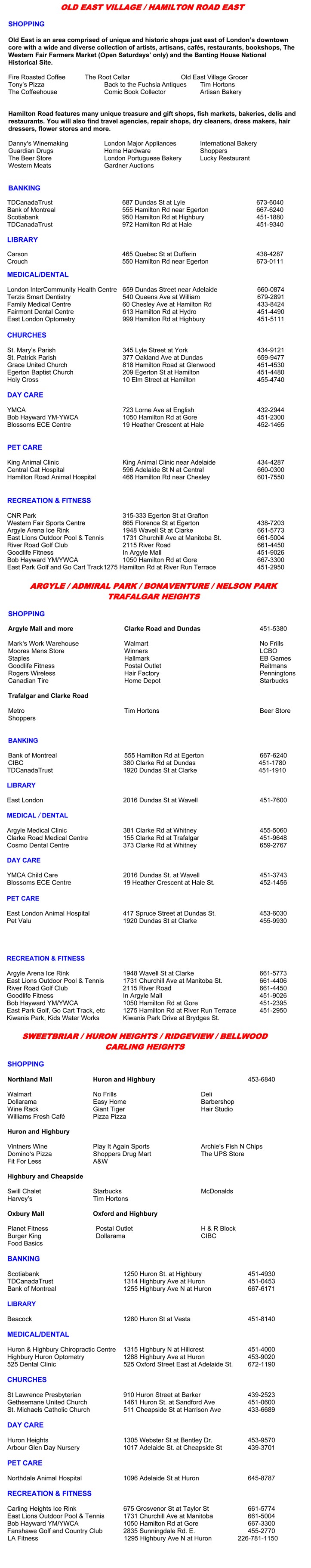 Downtown London Amenities